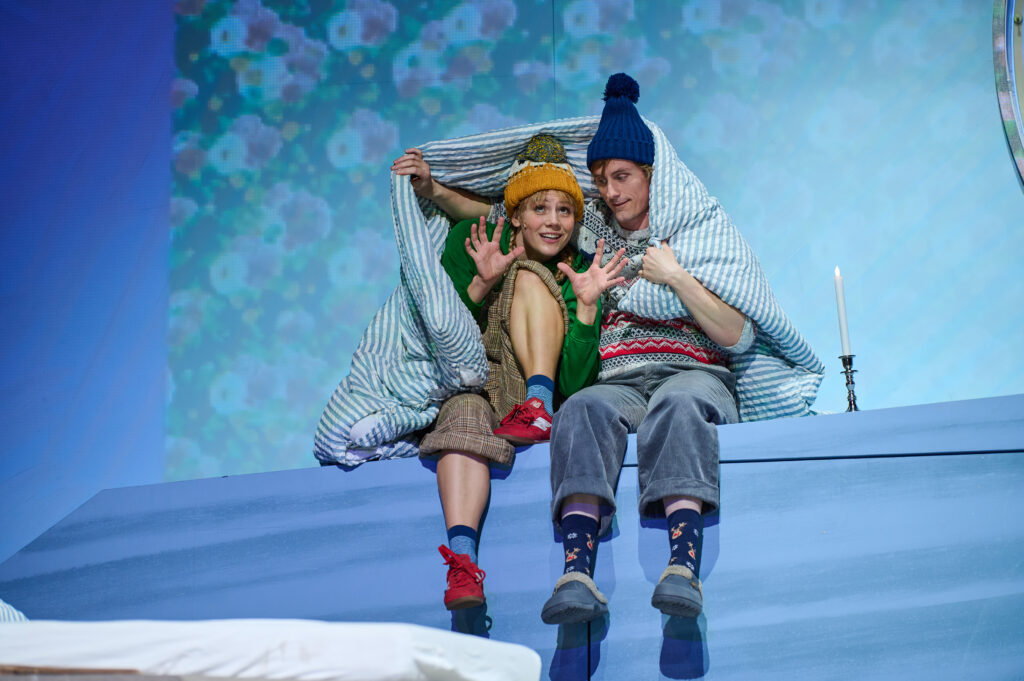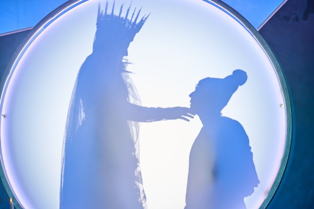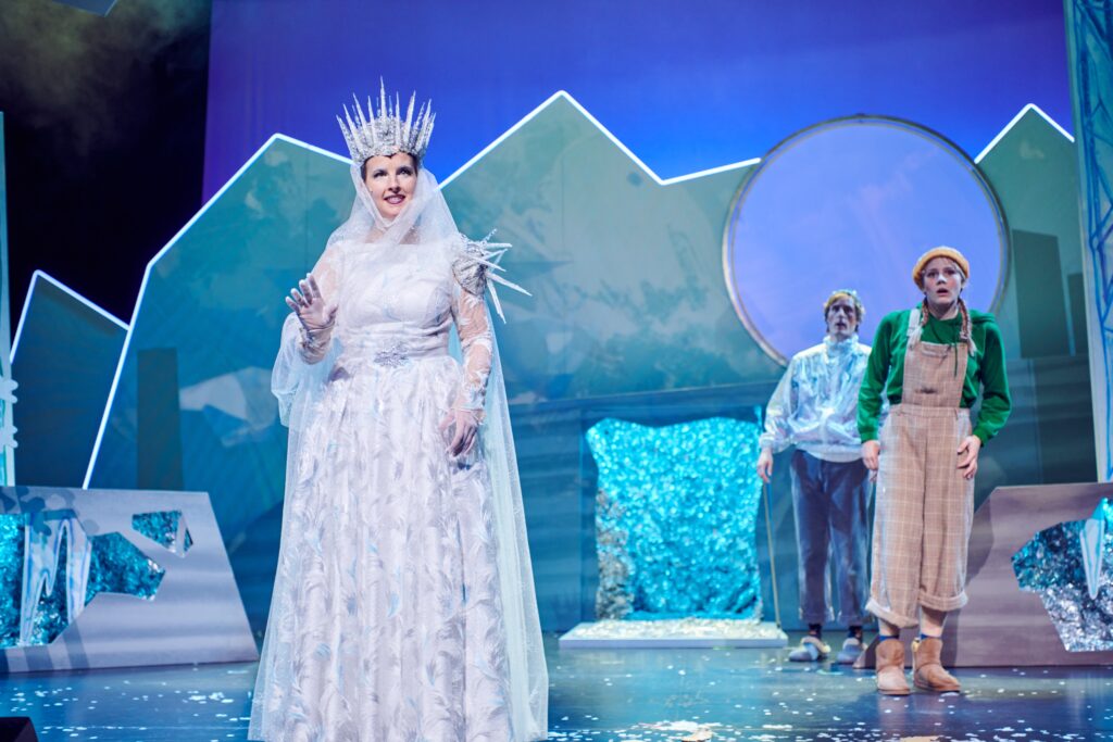 Der ausgedehnte Stau rund um die Rheinbrücke verhinderte eine pünktliche Ankunft zu Beginn des Theaterstücks und so fanden sich die sichtlich aufgeregten Kinder sogleich mittendrin in den Abenteuern der Freunde Gerda und Kai. Letzterer wurde von den Splittern eines teuflischen Spiegels in Herz und Auge getroffen, wodurch sein Herz eiskalt wurde und ihm seine Augen das Schöne nur noch als Hässlich sehen ließen. Unglücklicherweise verfällt er schon bald der schönen, aber bitterbösen Schneekönigin, die ihn in ihren Eispalast entführt.